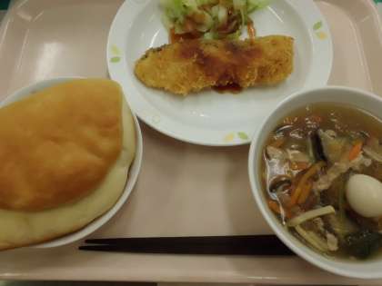 ミルクパン・牛乳・魚のフライ・ゆでキャベツ・春雨スープ