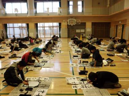 今年初めの学年行事は、”書き初め会”です。
