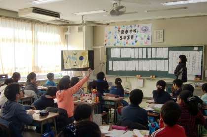 5年3組は国語。みんなで作った俳句について話し合っています。