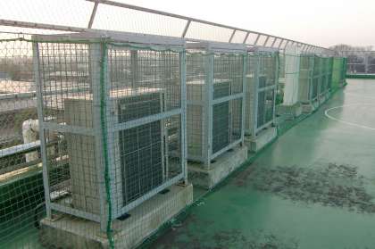東側の屋上のエアコンの室外機にはネットが張られています。