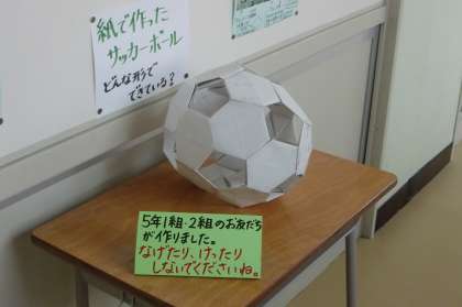 5年生が作ったサッカーボールです。正六角形を組み合わせて完成させました。