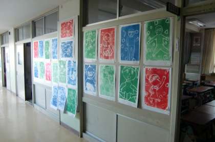 3年3組の「紙版画」、6年生の「絵の具の使い方と着彩」です。
