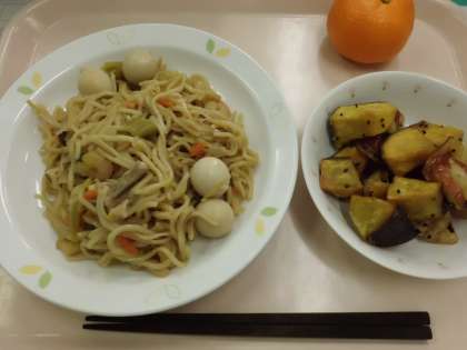 五目焼きそば・牛乳・りんご大学芋・くだもの