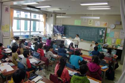 3年4組は国語。「昔のこと聞いてきました」の報告会です。