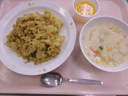 ツナピラフ・牛乳・クリームスープ・みかんゼリー