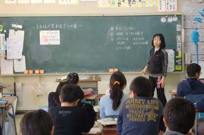 4年1組、3組、算数ルームでは算数の「ともなって変わる量」の単元に入りました。身近な事柄から片方が変わるともう片方が変わる場面を考えています。