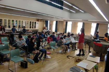 6年1組は音楽。「カルメン前奏曲」の合奏です。