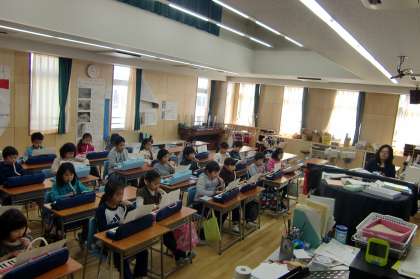 2年3組も音楽。「よろこびの歌」の合奏です。