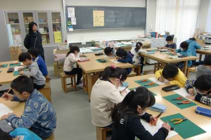 4年2組は図工。ペンチとラジオペンチのスケッチをしています。