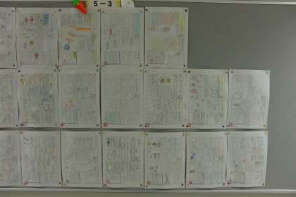 家庭科室前に掲示されている5年の「寒い日の生活の工夫」です。