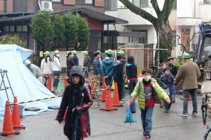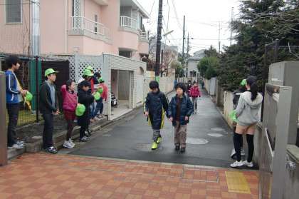 正門と南門に分かれて、登校してくる子たちにあいさつをしています。