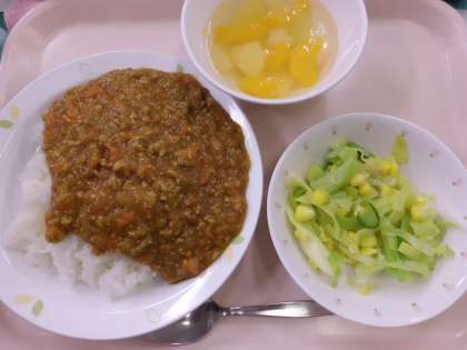 キーマカレーライス・牛乳・コーン入りフレンチサラダ・フルーツポンチ