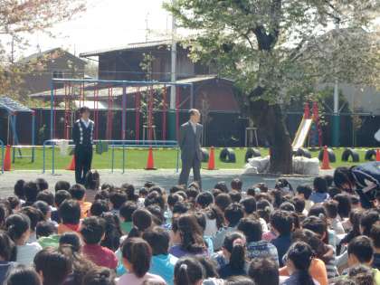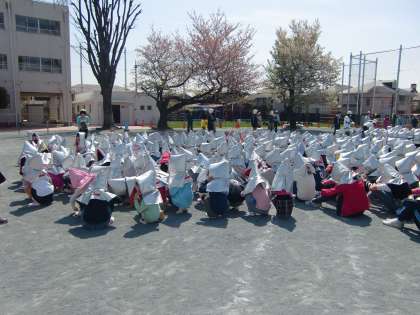 今日は家庭科室から火災が発生した想定で避難を行いました。