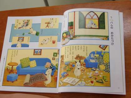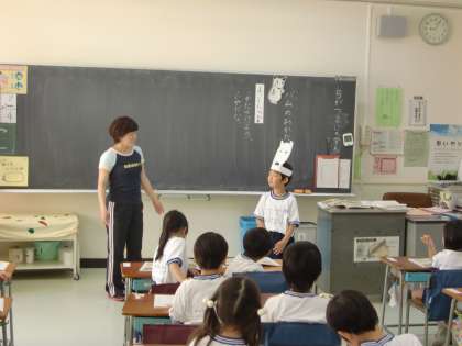 1年1組は道徳。絵本の主人公「バム」になりきって、気持ちを考えます。