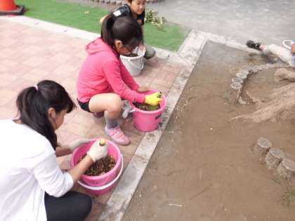 今日は、黒土、赤土、鹿沼土を混ぜる土作りの作業を行いました。