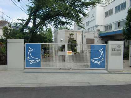 正門に取り付けられている千歳小のマスコット「くじら」に仲間がようやく増えました。