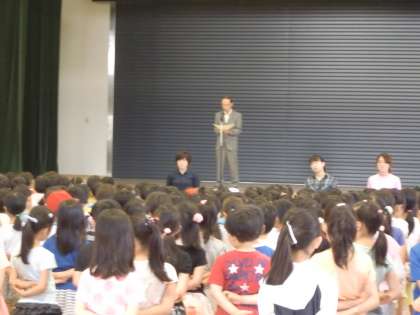 今朝の校長先生のお話は、登校中に見かけたサクランボのことと、詩「教室はまちがうところだ」の紹介でした。