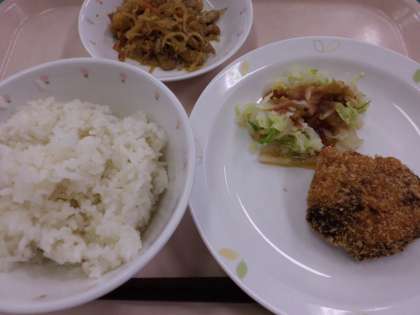 ごはん・牛乳・魚のメンチカツ・ゆでキャベツ・切り干し大根の煮つけ