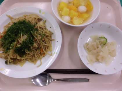 ソース焼きそば・牛乳・大根ときゅうりのごま風味・フルーツ白玉