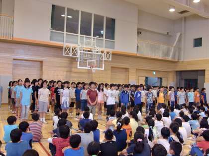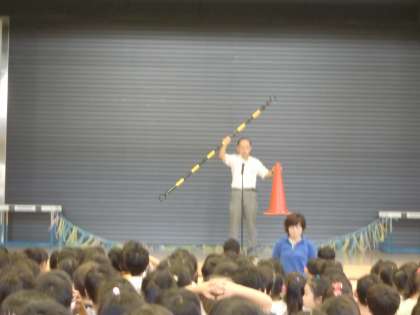 おはようございます。今朝の校長先生のお話は、各学年の運動会の演技について、出勤途上に野川で見かけたアオダイショウのこと、芝生に設置されているカラーコーンやバーを壊さないようにという内容でした。