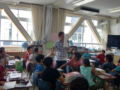 4年3組は国語。6月6日に書く予定の手紙に使う便せんについての説明を聞いています。