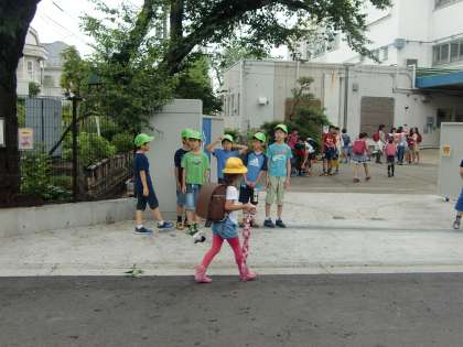 今週は4年生があいさつ当番になっています。西門・正門・南門に分かれて登校してくる子どもたちに元気よくあいさつをしています。