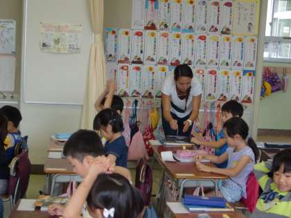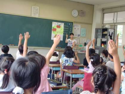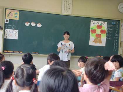 これは昨日の授業です。答えが8になるたし算の式から、文章題を作りました。
