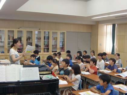 第一音楽室での授業です。音楽集会での歌「すてきな友達」を歌い、花丸がもらえて大喜び。「とんび」「風のメロディ」も歌いました。