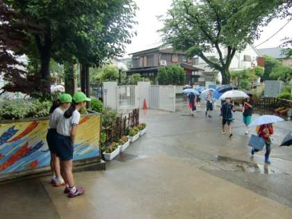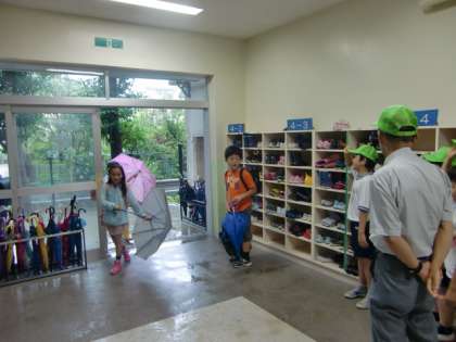 雨の日でもあいさつ当番