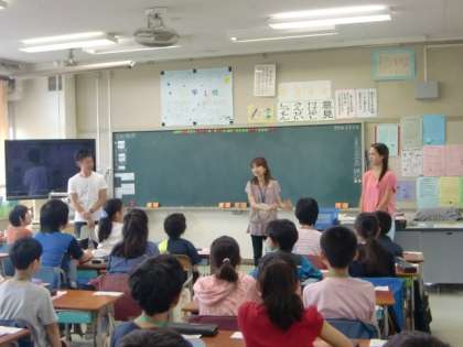 今日はいつもの英語支援員さんに加えてアメリカの大学生の方も加わっての授業でした。