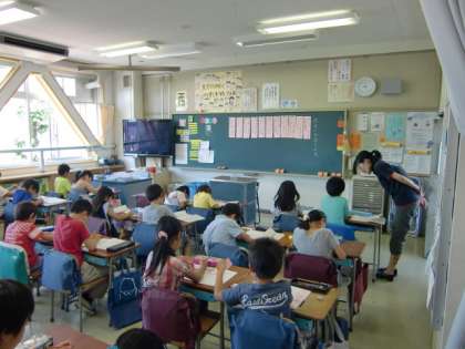 3年1組は国語。作文を書くときに構成を考えるためのメモを作ります。