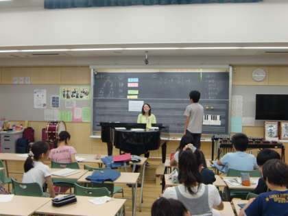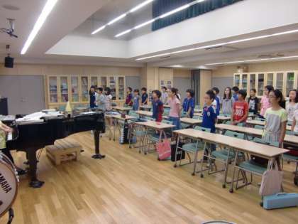 今日は歌のテストの合間に木琴の練習をし、楽典のミニプリントもするという三本立ての授業でした。一人で歌うのは度胸が必要ですね。