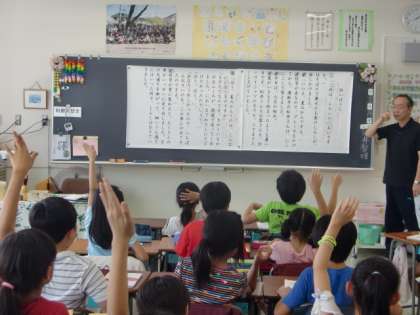 「白いぼうし」の本文に沿って、自分の意見を理由を明らかにして発表する授業でした。