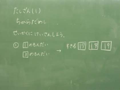 今日は「ちからだめし」。そろそろたし算の学習はおしまいのようです。