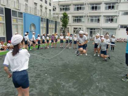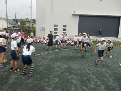 広くなった校庭で、長縄記録会を行いました。最初に高学年、次は低学年が五分間で何回跳べるかに挑戦しました。回し手や回数を数える係として各学級の保護者の方にお手伝いをしていただきました。ありがとうございました。