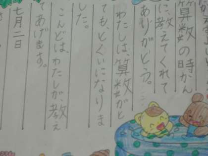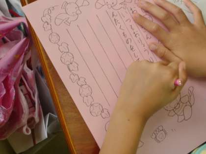 友達に書いたお手紙を交換しました。続いて、家族の人やほかの人に手紙を書きました。