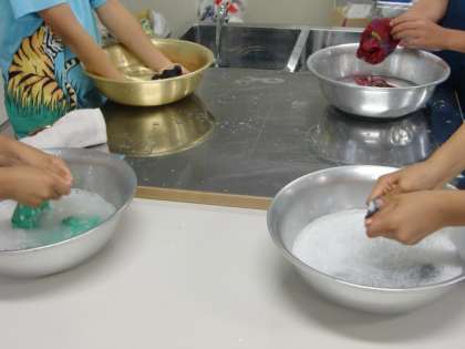 今日の学習は「洗濯」。身につける物を手洗いで洗濯する学習です。