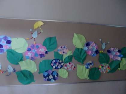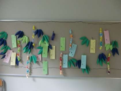 七夕が近いということで、願い事が掲示されています。あじさいも素敵です。