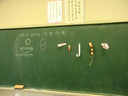 「ゆらゆらウキウキ」というタイトルです。折り紙などを使ってつるす物を作っています。