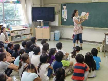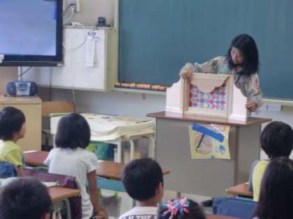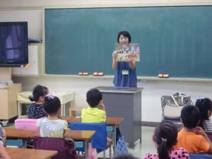 保護者の有志の方による読み聞かせです。紙芝居も登場しています。