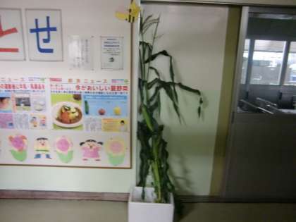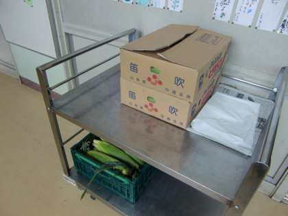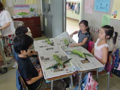 今日の給食に出されるとうもろこしの皮を2年生がむきました。