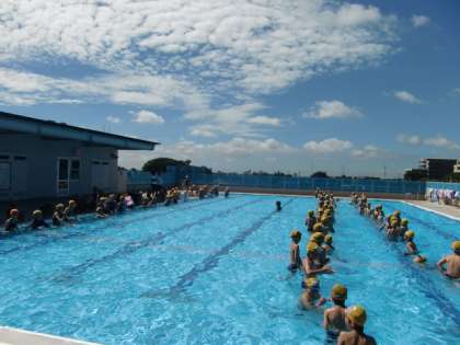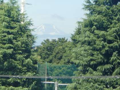 屋上のプールから西の空に、まさしく校歌の二番の通り富士山が見えました。台風が過ぎ去って空気がきれいになったからでしょうか。