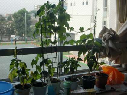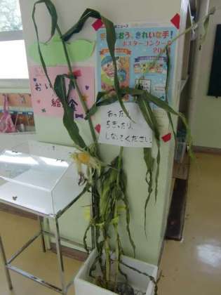 5年の教室で育てているインゲンマメと2年の廊下にある(先週ご紹介した)トウモロコシです。