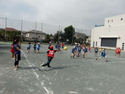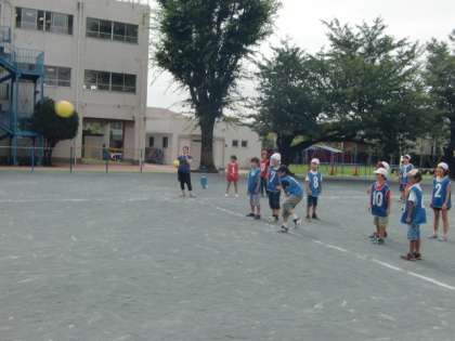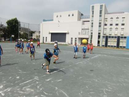 4年4組校庭でドッジボール