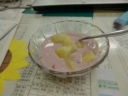 6年3組が家庭科の調理実習でデザート作りをしました。職員室にもおすそ分けをいただきました。おいしかったです。ありがとうございました。
