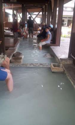 乳白色の足湯です。2クラスごとですが目白押しの状態です。