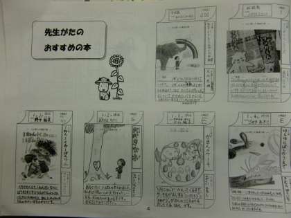 夏休みの宿題に読書感想文を書くための本を選んでおく、という学年が多いのではないでしょうか。一学期末に図書委員会が作成した「本を読もう」というパンフレットを配りました。これは各クラスで取り組んだおすすめの本カードの代表児童と教職員のおすすめの本が紹介されています。この中から選んでみてはいかがでしょうか。