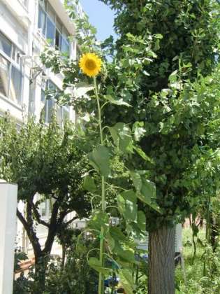 先週までつぼみだったヒマワリの最後の一本ががようやく咲きました。3年生の皆さん、覚えておいてくださいね。