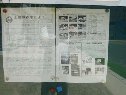 下の2枚は本校と関係の深い千歳中学校(みのりの学び舎)と上祖師谷中学校(温知学舎)の学校だよりを掲示している掲示版です。