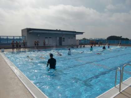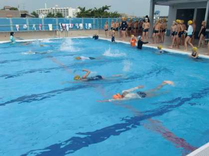 8月第4週。後期の水泳指導が始まりました。5・6年生は約60名が参加しました。